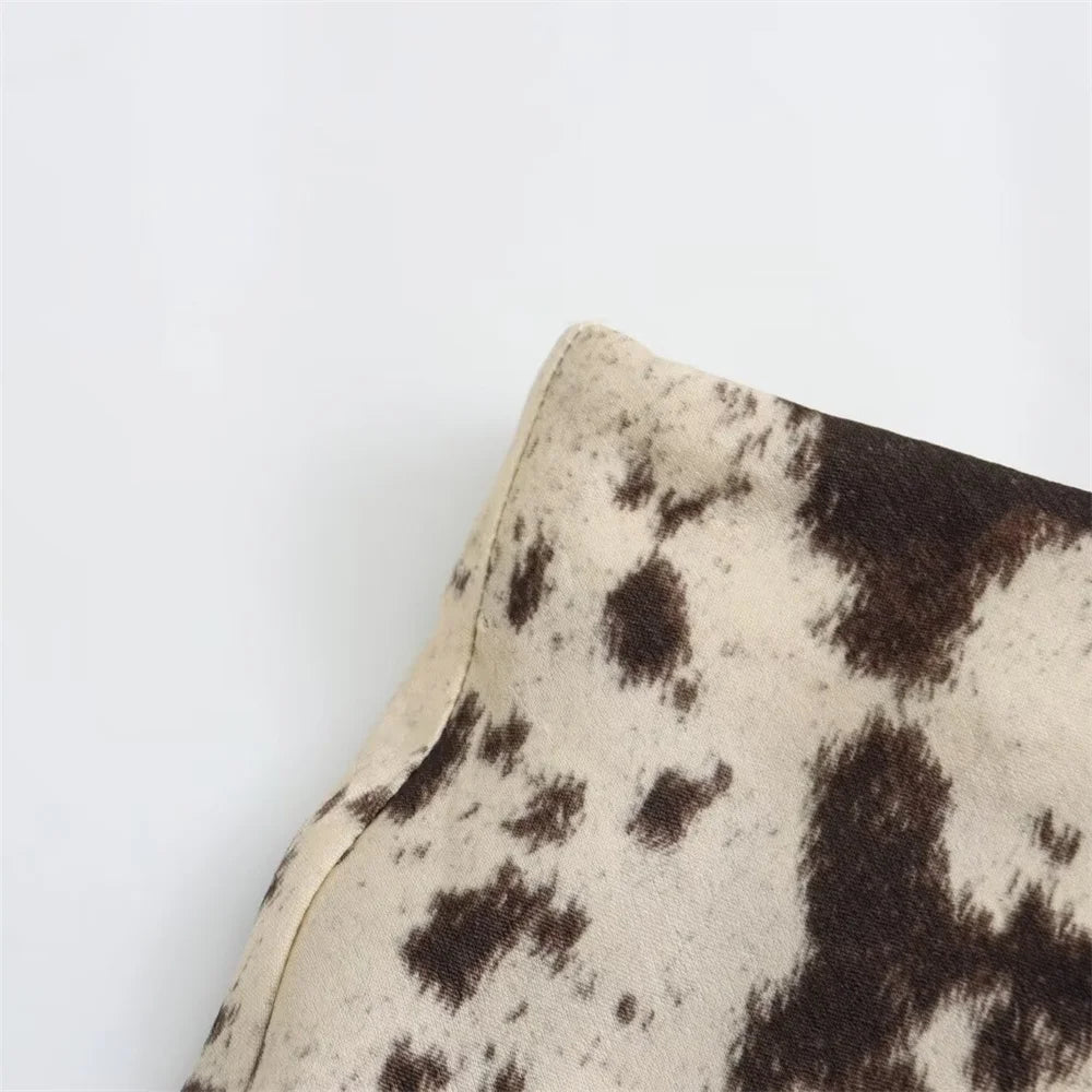 2024ZAR4 Spring Summer Women's Fashion niche animal print silk satin texture high waisted midi skirt