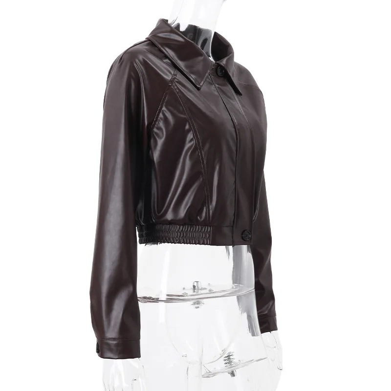 2025 Fashion Faux Leather Jacket Aesthetic Fashion Streetwear Turn-down Collar Coat Women Autumn Casual Simple Long Sleeve Coats