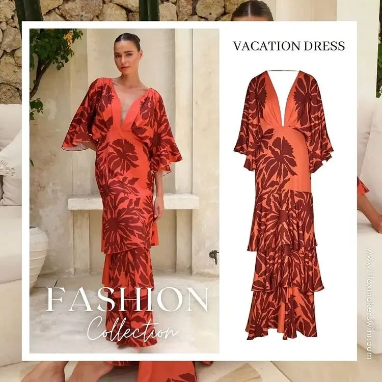 FLAXMAKER Maxi Long Dress Women Sexy Sleeveless Ruffle Dolman Sleeve Printed Dresses Bandeau Blossom Print Sundress 2025