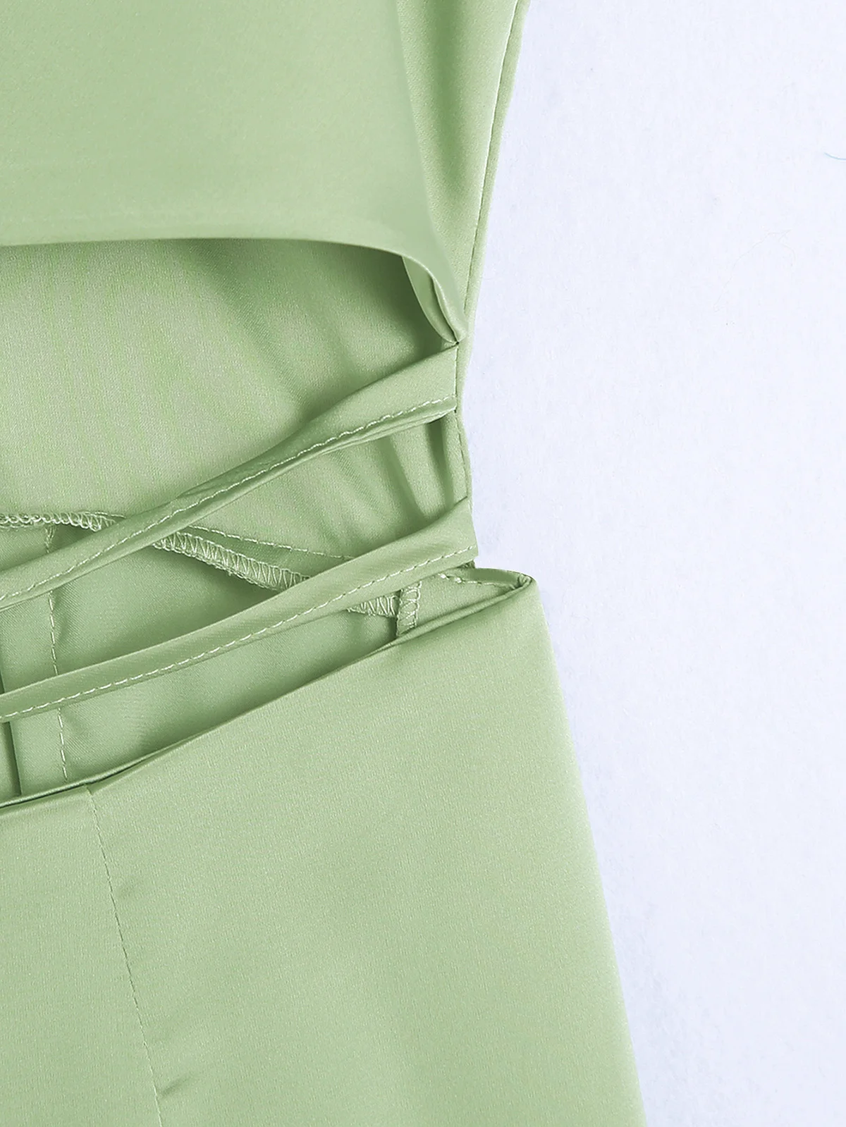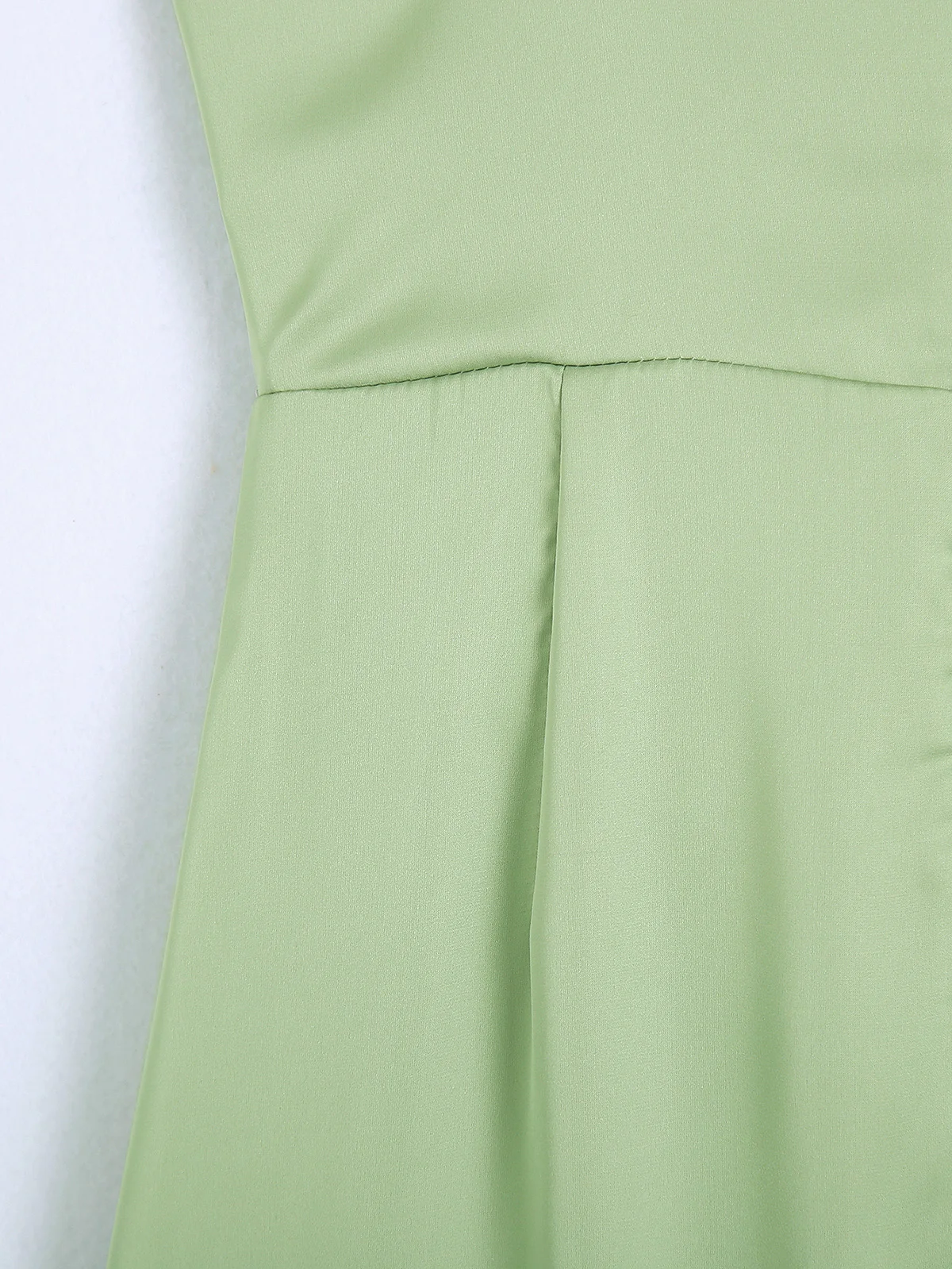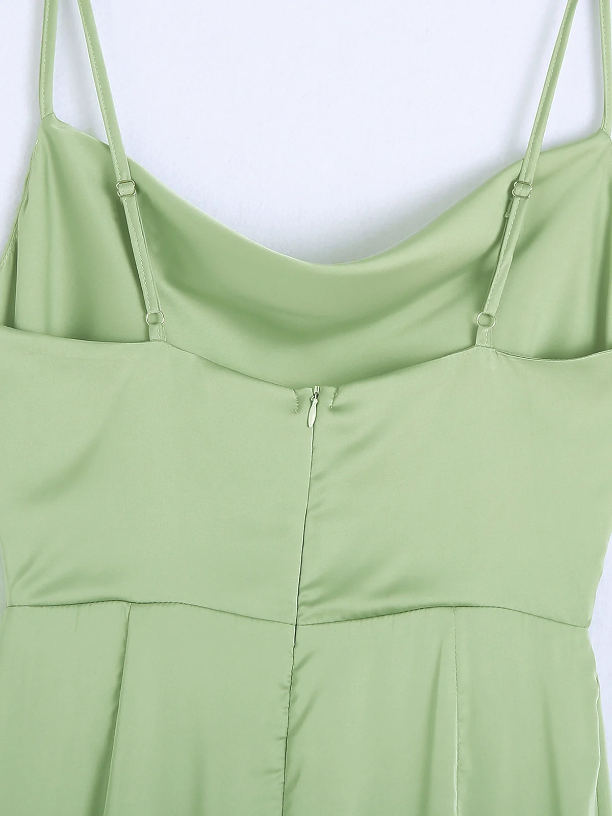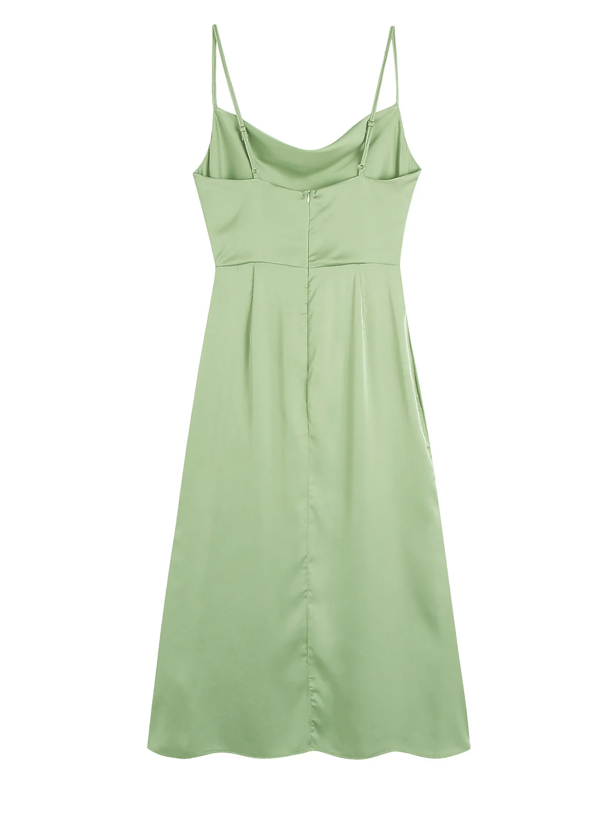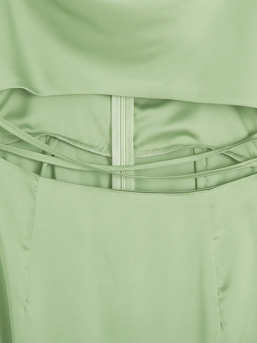 Party Evening Dresses Women Summer Spaghetti Strap Elegant Satin Midi Dress Cowl Neck Sleeveless Waist Cut Out Sexy Slip Dress