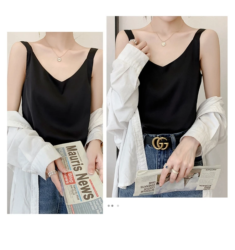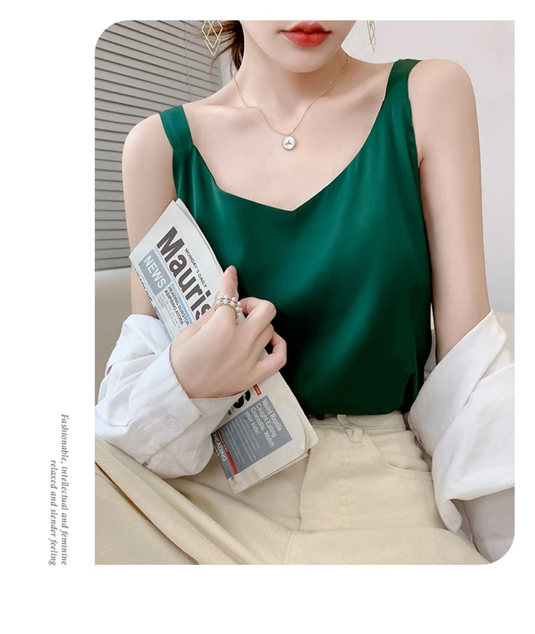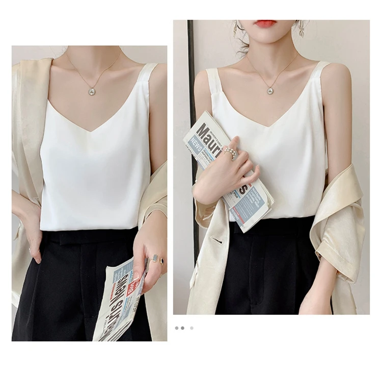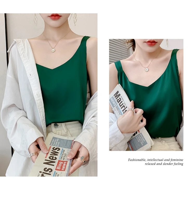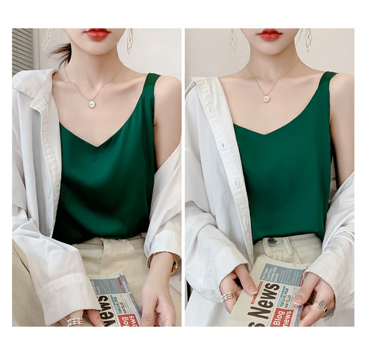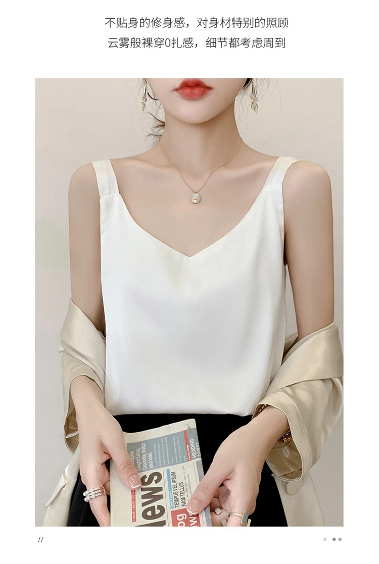 Silk Camisole Ladies Summer Suit Inside V-Neck Satin Bottoming Vest 2025 Thin Loose Sleeveless Sling Silk Tops Small Shirt Trend