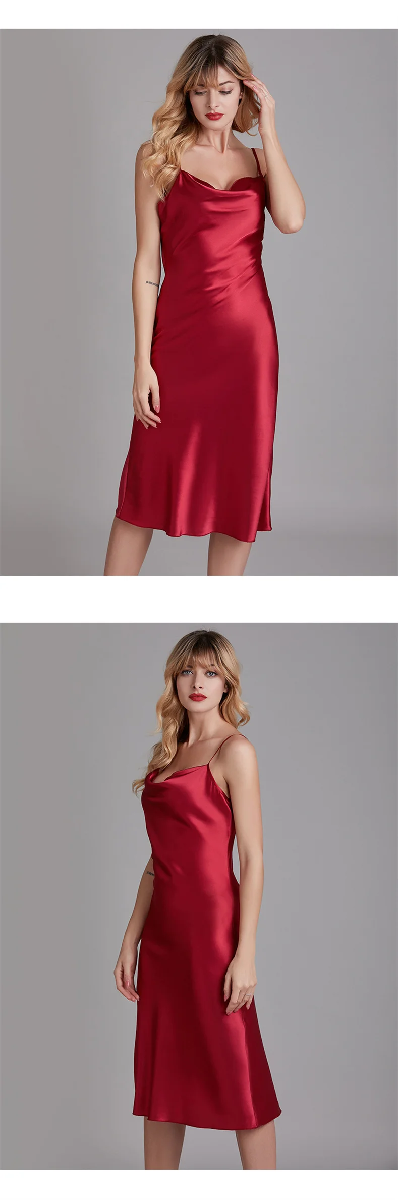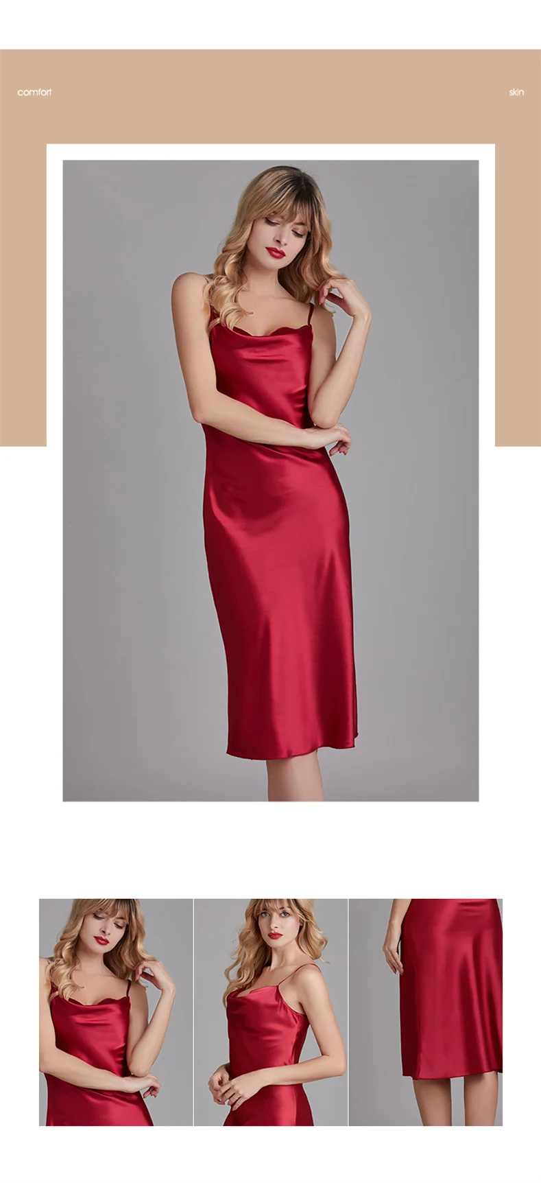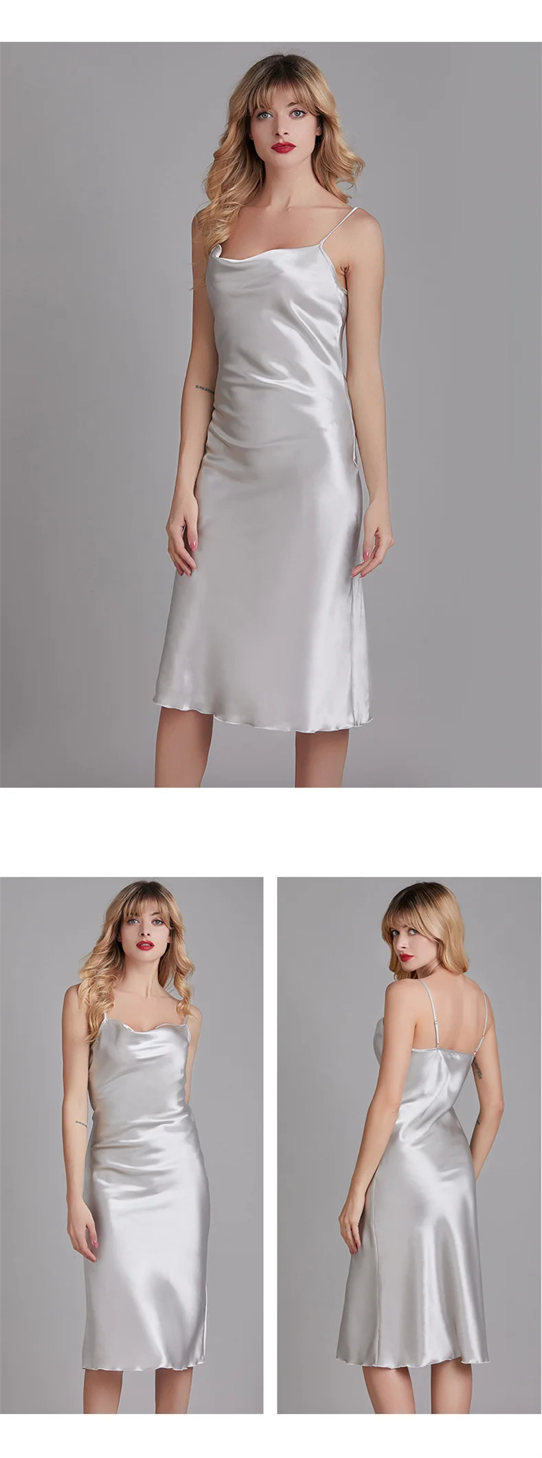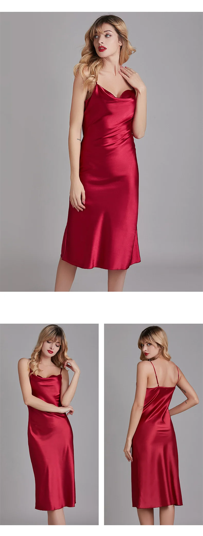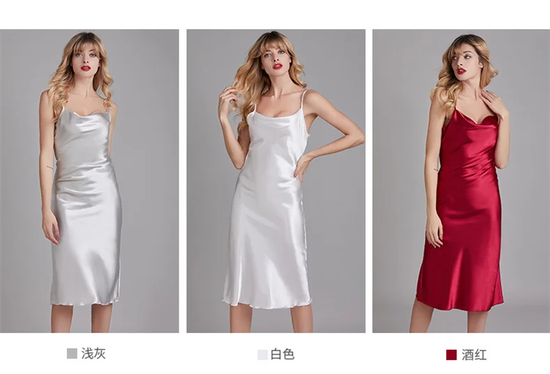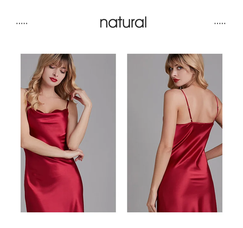 Spring Summer Ice Silk Satin Nightgowns for Women V-neck Elegant Solid Slim Fit Suspender Long Thin Nightdress