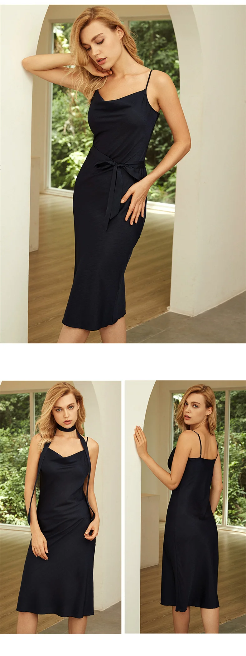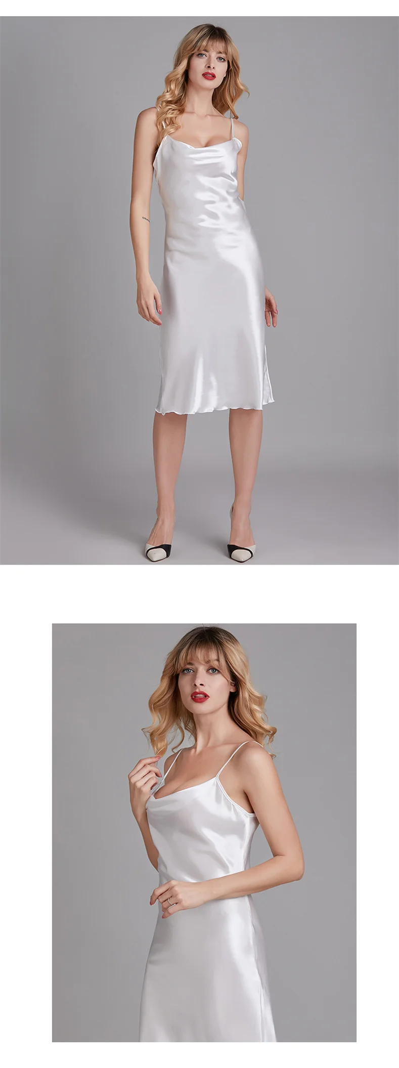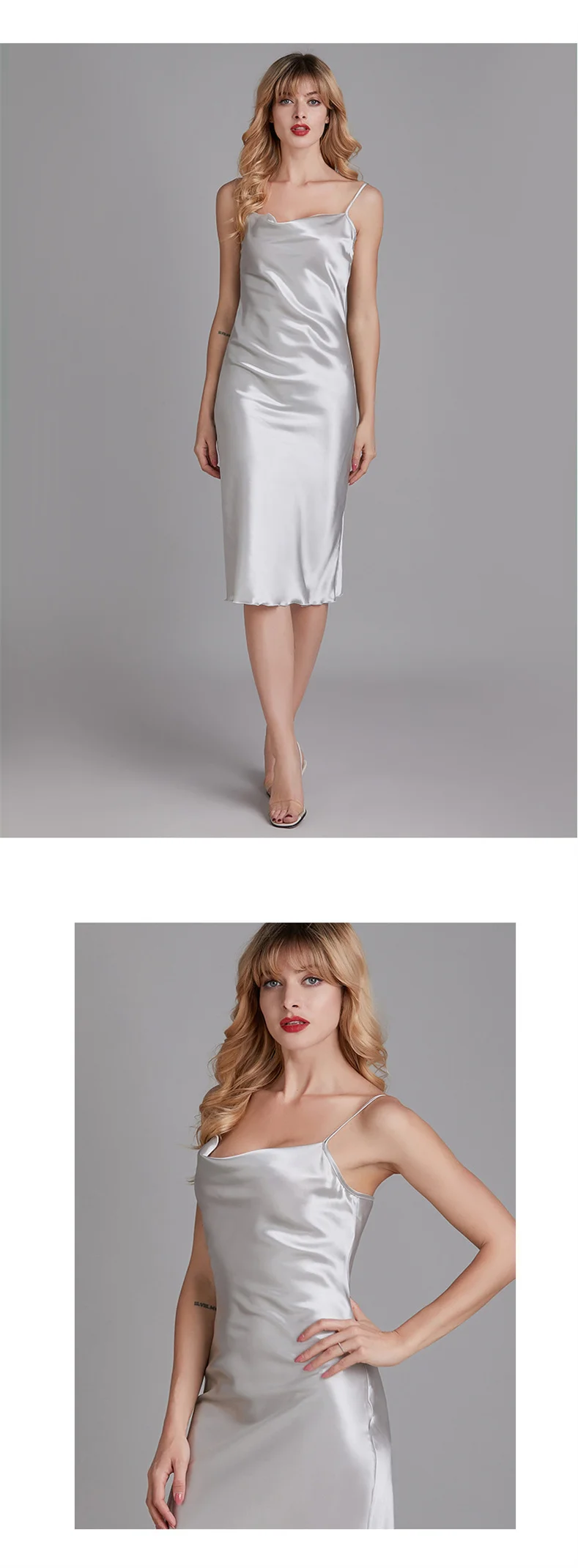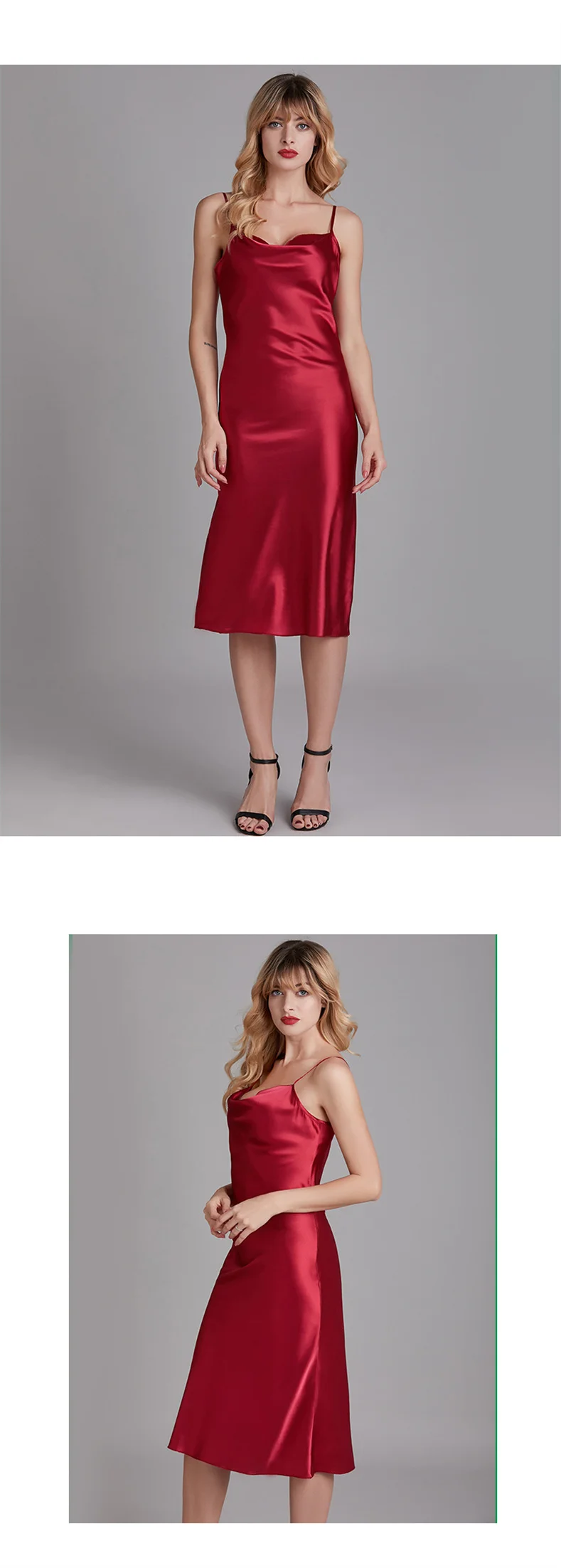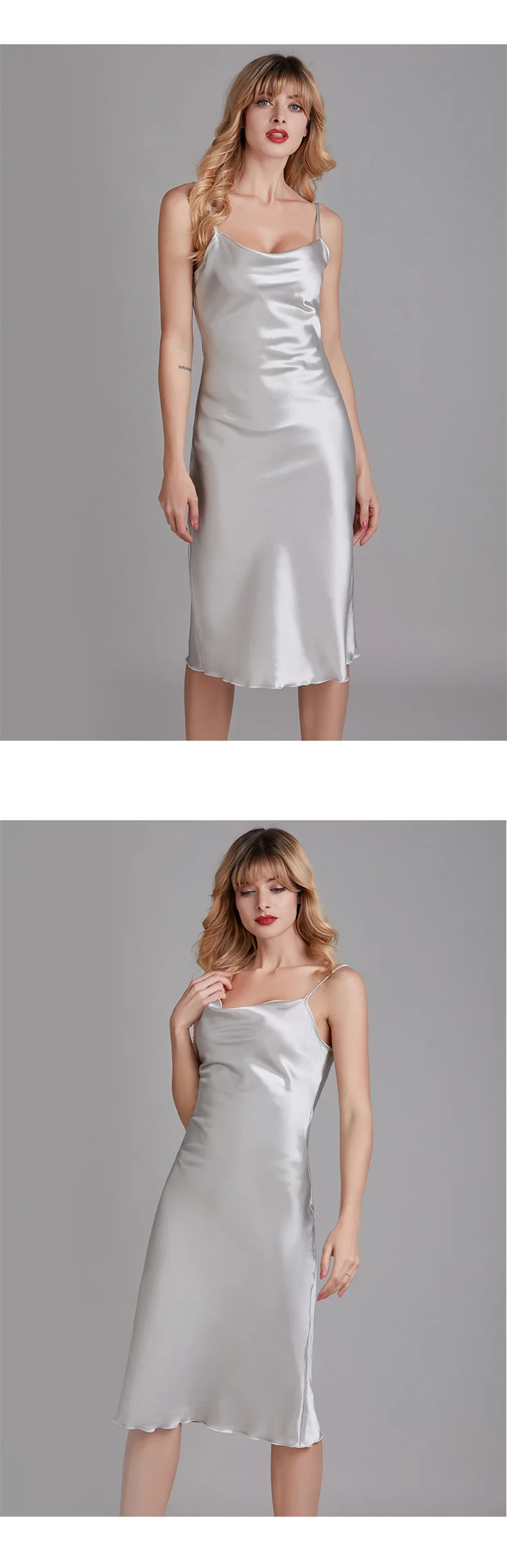 Spring Summer Ice Silk Satin Nightgowns for Women V-neck Elegant Solid Slim Fit Suspender Long Thin Nightdress